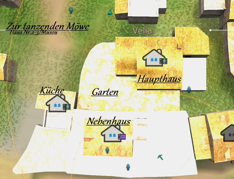 Das Lusthaus "Die Tanzende Möwe" liegt im Zentrum der Hafenstadt Velia in Haus Nr. 2-3/Musou. Die Tanzende Möwe bietet seinen Gästen ein unvergessliches Erlebnis, das die Sinne benebelt, die Muskeln tiefenentspannt und den Leib in lustvolle Ekstase treibt. Für wenig bis üppig gefüllte Silberbeutel bietet das Lust- und Entspannungshaus ein vielfältiges Dienstleistungsportfolio an, welches das Leid, die Sorgen und Nöte des Alltags vergessen lässt.